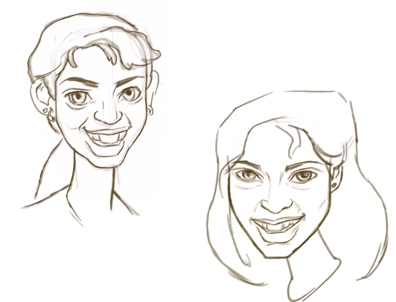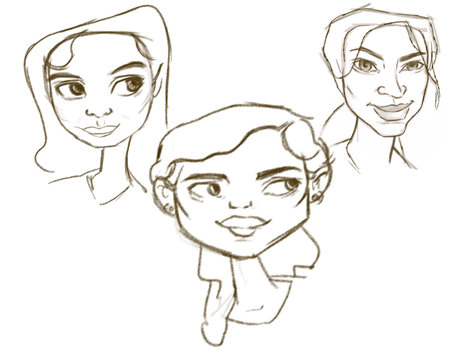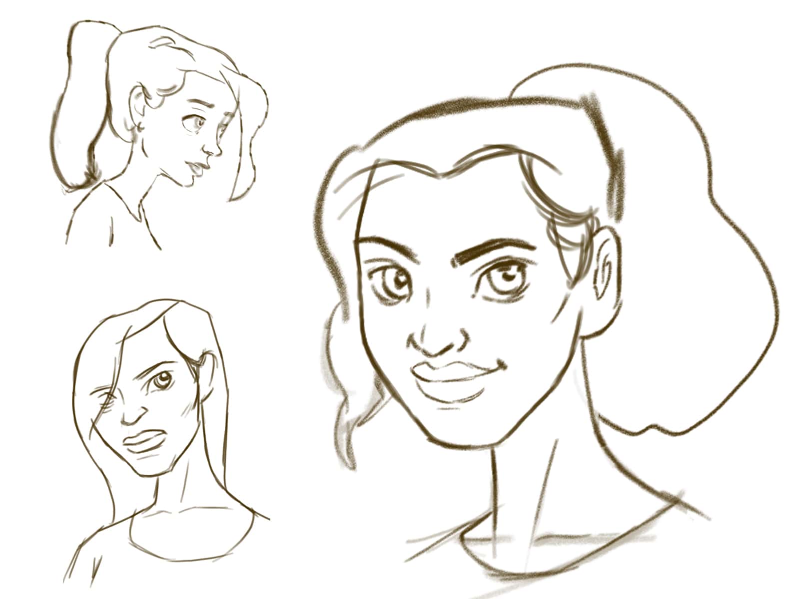 Early exploration of "The True Meaning of Smekday." Facial design of the female character "Tip" ranges in age from 10-15.