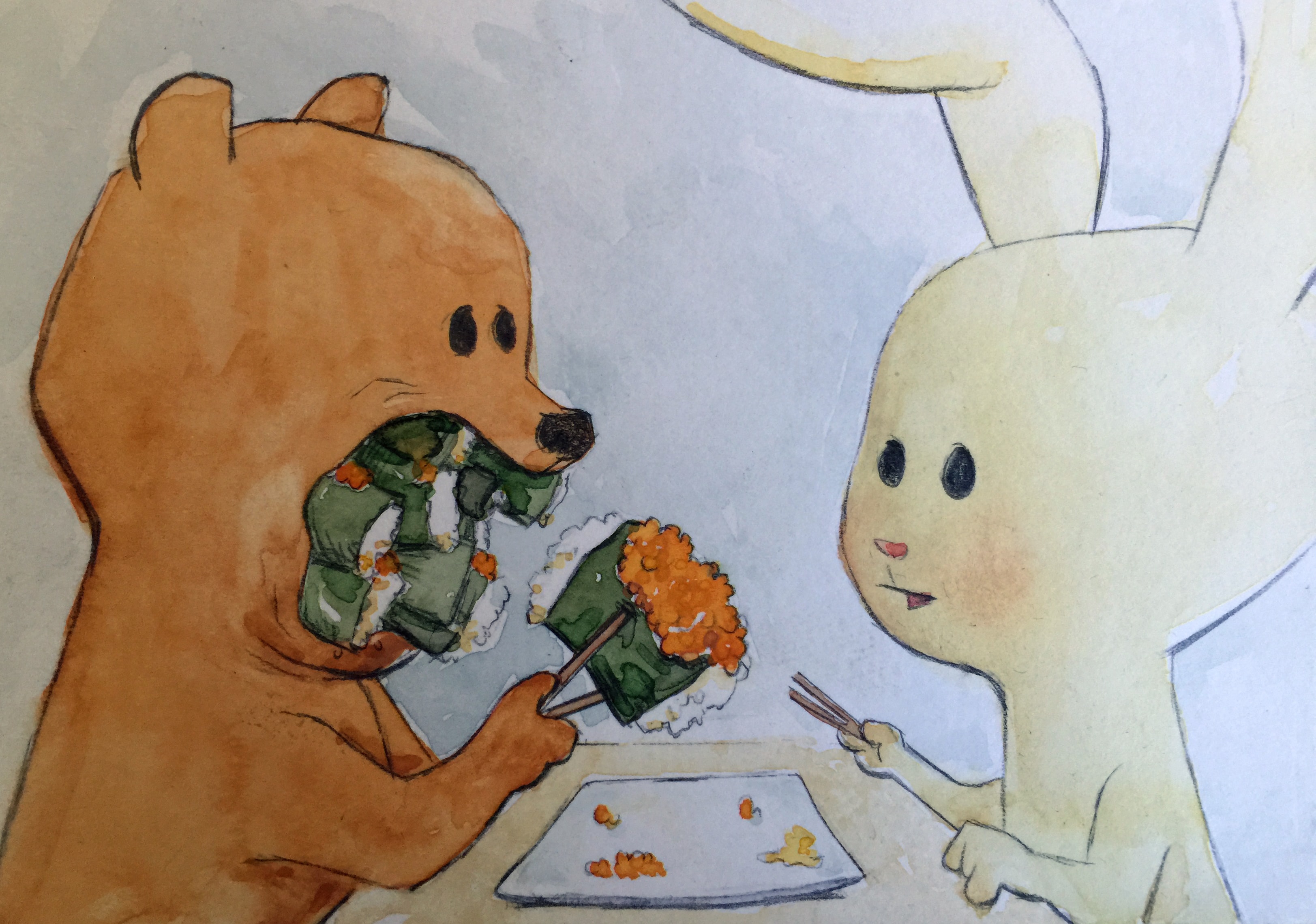 Created using watercolor and colored pencil