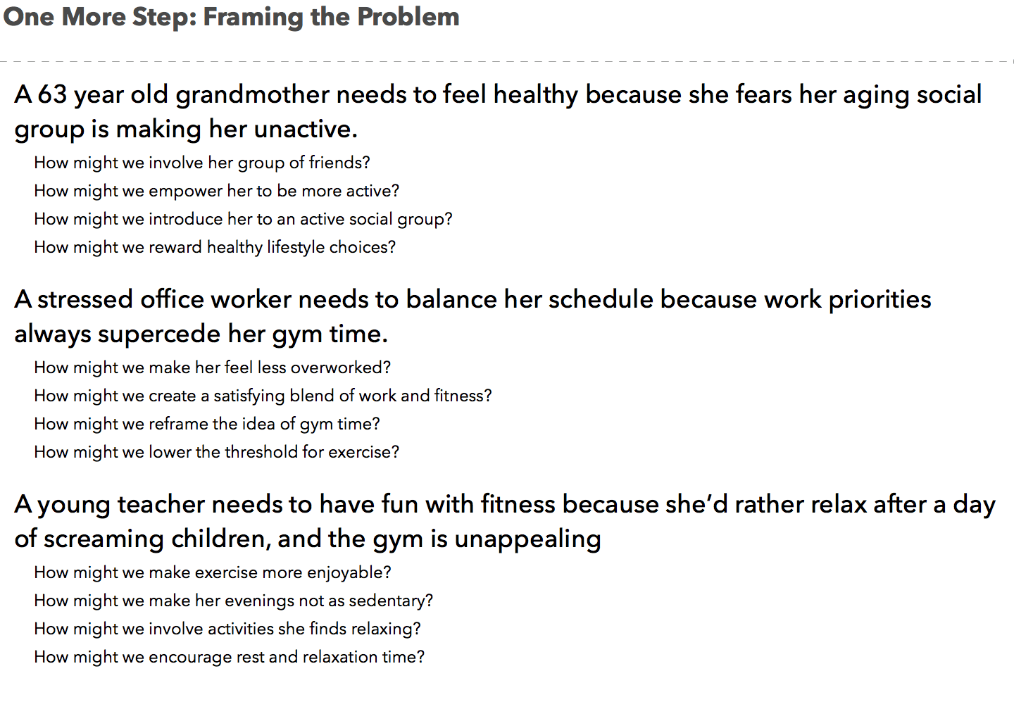 This helped me gain a stronger understanding of the research process and its importance. I learned how to take an idea about a product, research about potential users and their needs, and synthesize data and insights to create possible solutions.