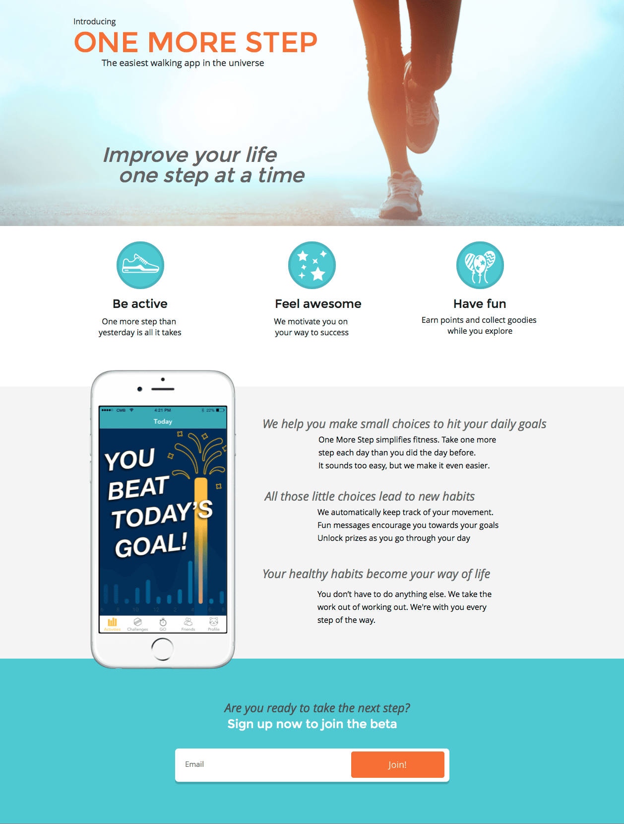 I hypothesized that extremely small progress coupled with positive feedback will create permanent behavioral changes. My goal was to find the most effective and satisfying ways to motivate users daily.