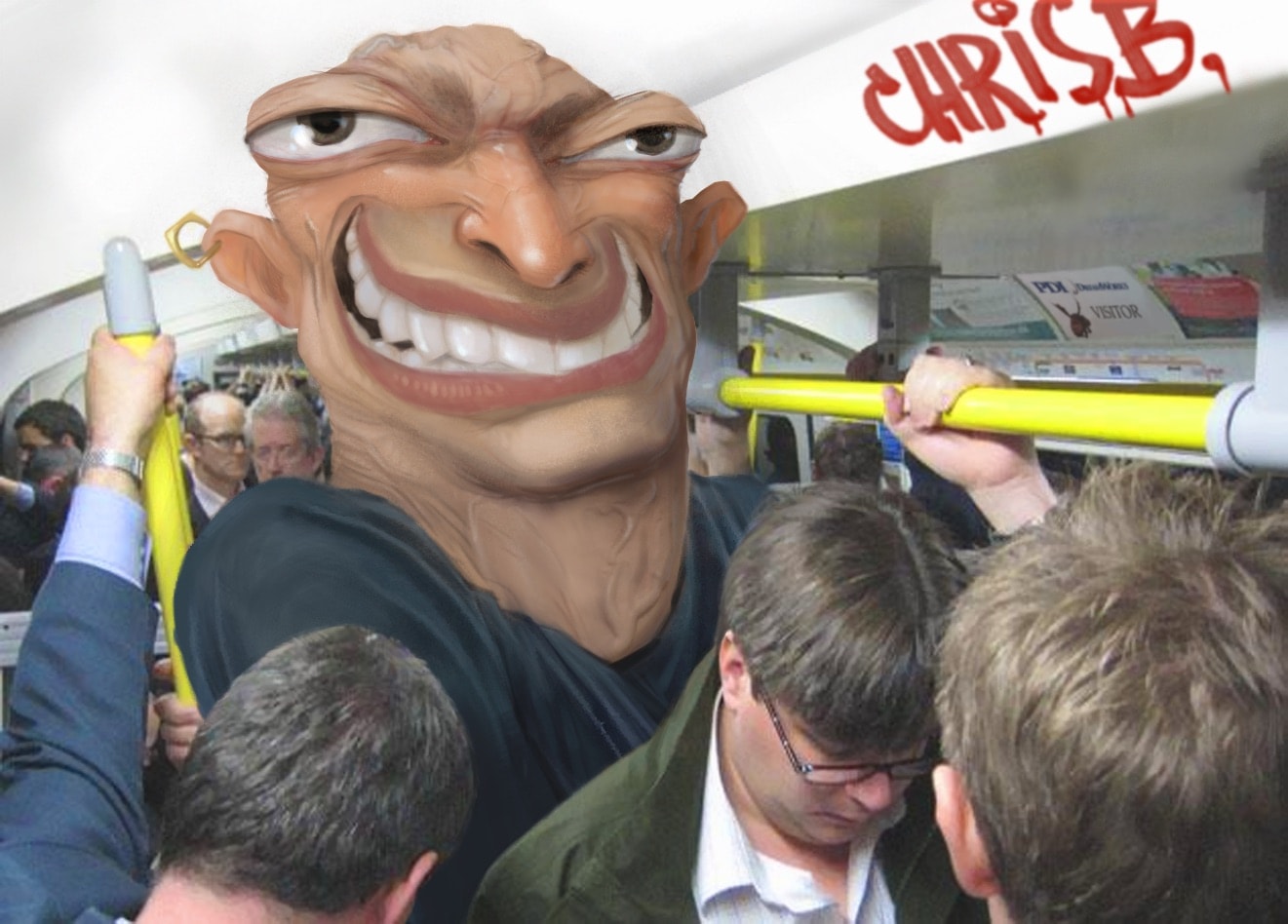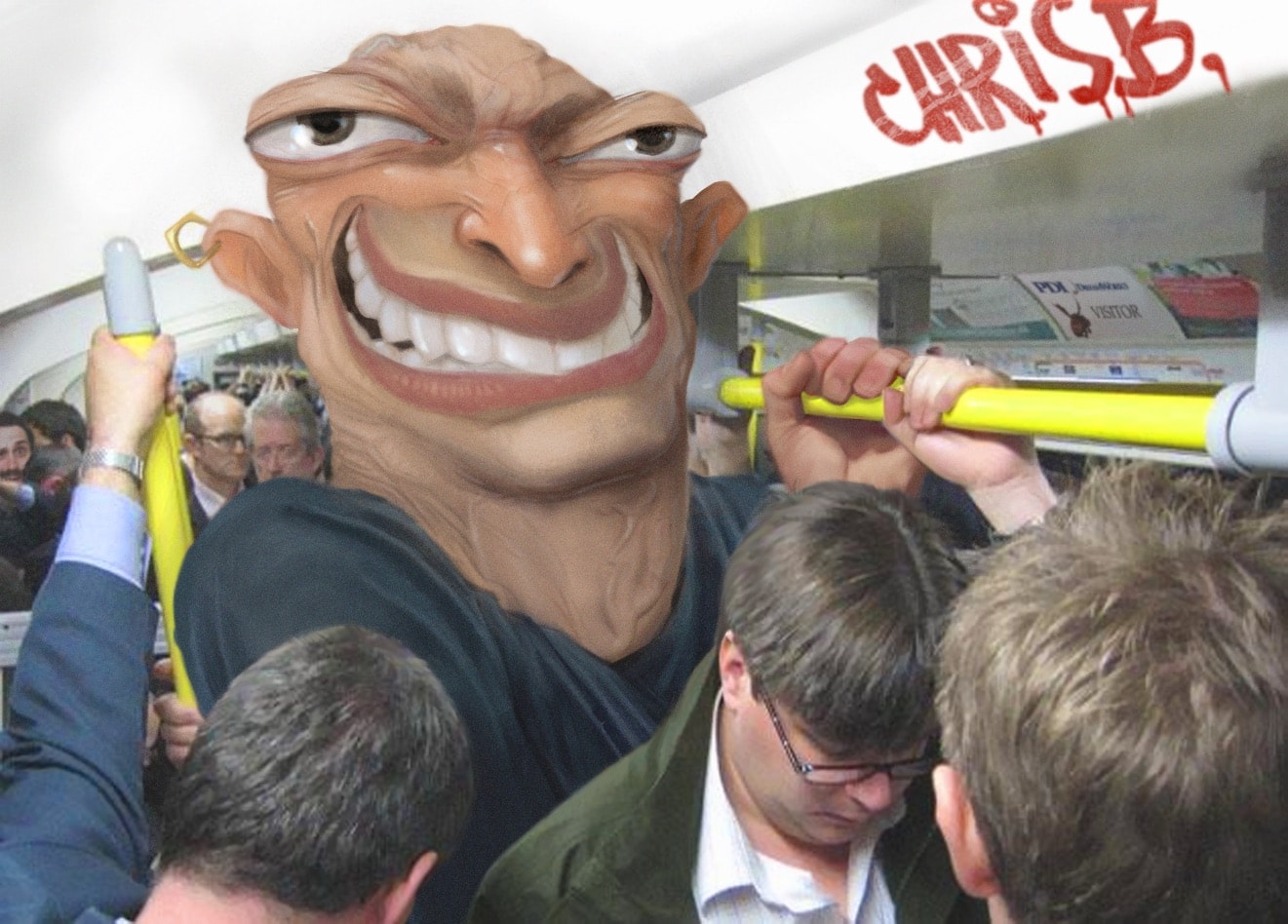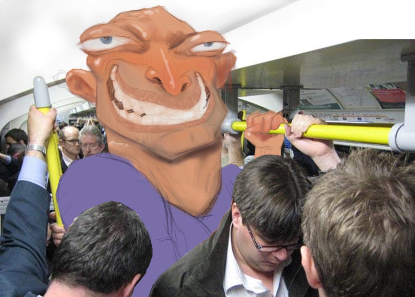 Using a subway photo for the setting, I roughly sketched out the character. More detail and some local color was added. Because of the lighting in the photo, I kept the shading fairly flat.